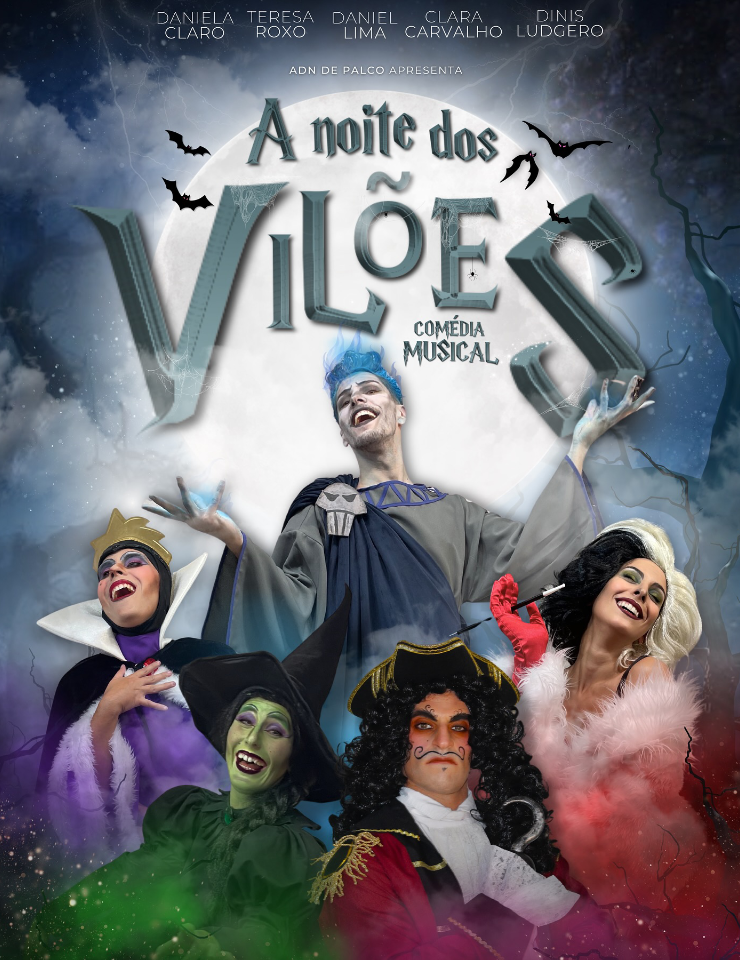 "A Noite dos Vilões" é a mais recente produção da ADN de Palco • Produções. Esta peça única traz cinco dos vilões mais icónicos dos contos de fadas e clássicos infantis para os dias de hoje, onde enfrentam os desafios do mundo moderno. Redes sociais, tecnologia e a perda do hábito de leitura são alguns dos temas abordados nesta comédia cheia de animação e sentido de humor. "A Noite dos Vilões" promete divertir tanto as crianças como os adultos, que se irão recordar destas figuras temíveis que marcaram a sua infância.